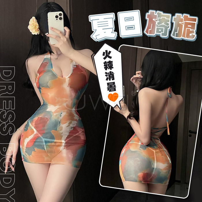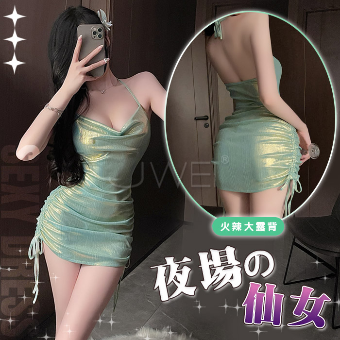 NT$399夏日熱浪.油亮款鏤空掛脖高衩性感連身衣(白色)