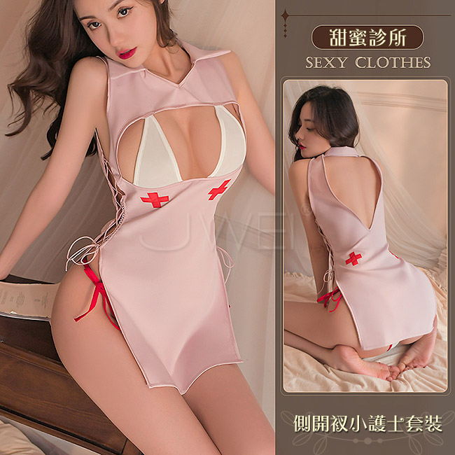 NT$139實習小護士.誘惑胸前縷空側開衩護士套裝2件組