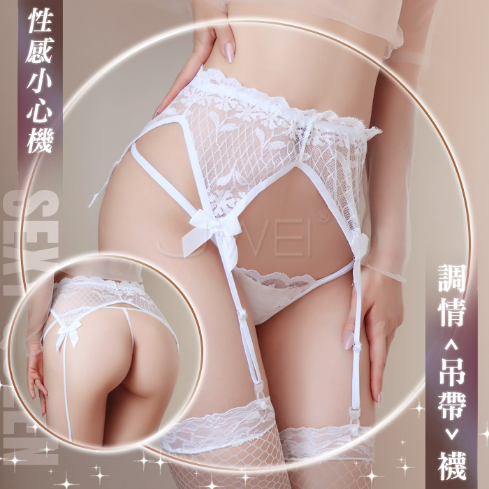 純愛迷宮.性感深V透明網紗蕾絲睡衣(白色)
